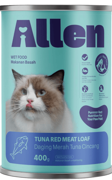 Makanan Kucing Basah Tuna Red Mead Loaf dengan Human Grade Tuna, bebas bahan buatan, kaya Omega-3 untuk kulit sehat dan bulu berkilau.